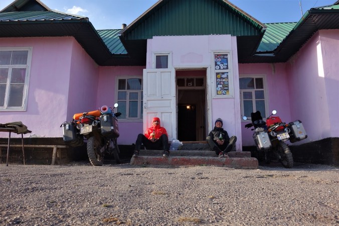 Die Jungs nehmen an derMongol Rally teil welche von London bis nach Ulanbator/Mongolei geht. Die Jungs sind aus Schottland und waren ziemlich cool drauf.