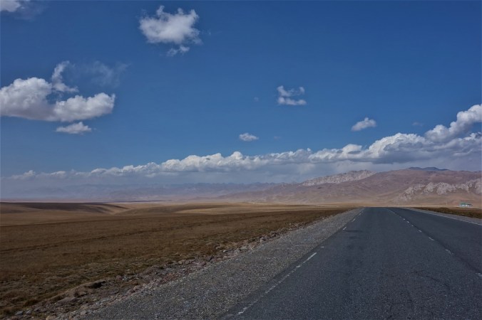 Am nächsten Tag führte unser Weg immer entlang der Hochebene und was sollen wir sagen, die Landschaft war einfach atemberaubend. Die Straße ging hauptsächlich geradeaus und schlängelte sich zwischen den Bergen auf der Hochebene entlang. Überall am Straßenrand standen Yurten, in denen die Nomaden leben und ihre selbst hergestellten Erzeugnisse und Essen verkaufen. Alle riefen und winkten uns zu und signalisierten das wir zum Essen vorbeikommen sollten.