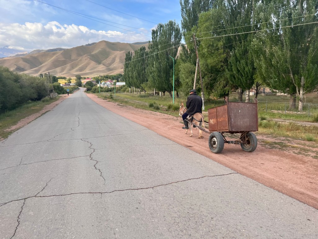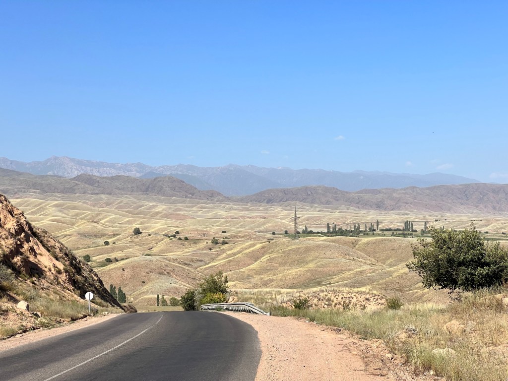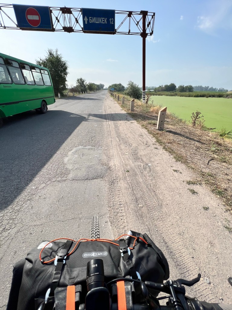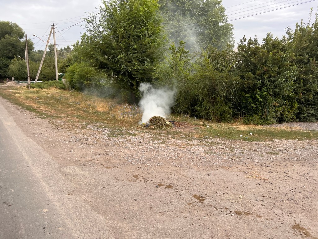 Am nächsten Tag standen noch 70km bis nach Bishkek auf dem Programm. Hier gab es das erste mal keine Höhenmeter zu überwinden und es ging flach dahin. Anfangs ging es ohne viel Verkehr gut voran. Manchmal sah es aus als wären wir in Südostasien. Durch die vielen Bäume sah es teilweise aus wie Dschungel, sehr ungewöhnlich für Kirgisistan. Umso näher wir Bishkek kamen, um so krasser wurden der Verkehr und die Abgase. Zum einen verbrennen Leute ihren Müll vor den Häusern und zum anderen die Abgase der Autos, vor allem der LKWs. Ich meine, wir in Deutschland reden viel über Klimaschutz und Abgase reduzieren. Was ich natürlich auch richtig finde. Ich persönlich bin kein Klimaaktivist, doch ganz ehrlich, was nützt dieses penible Verhalten bei uns, wenn im Rest der Welt ganz einfach gefühlt alles egal ist. Und das ist ja nicht nur hier in Kirgisistan so. In Europa fängt das schon in Italien an. Und auch wir haben das damals schon auf unserem Weg von Deutschland nach Istanbul beobachten können.