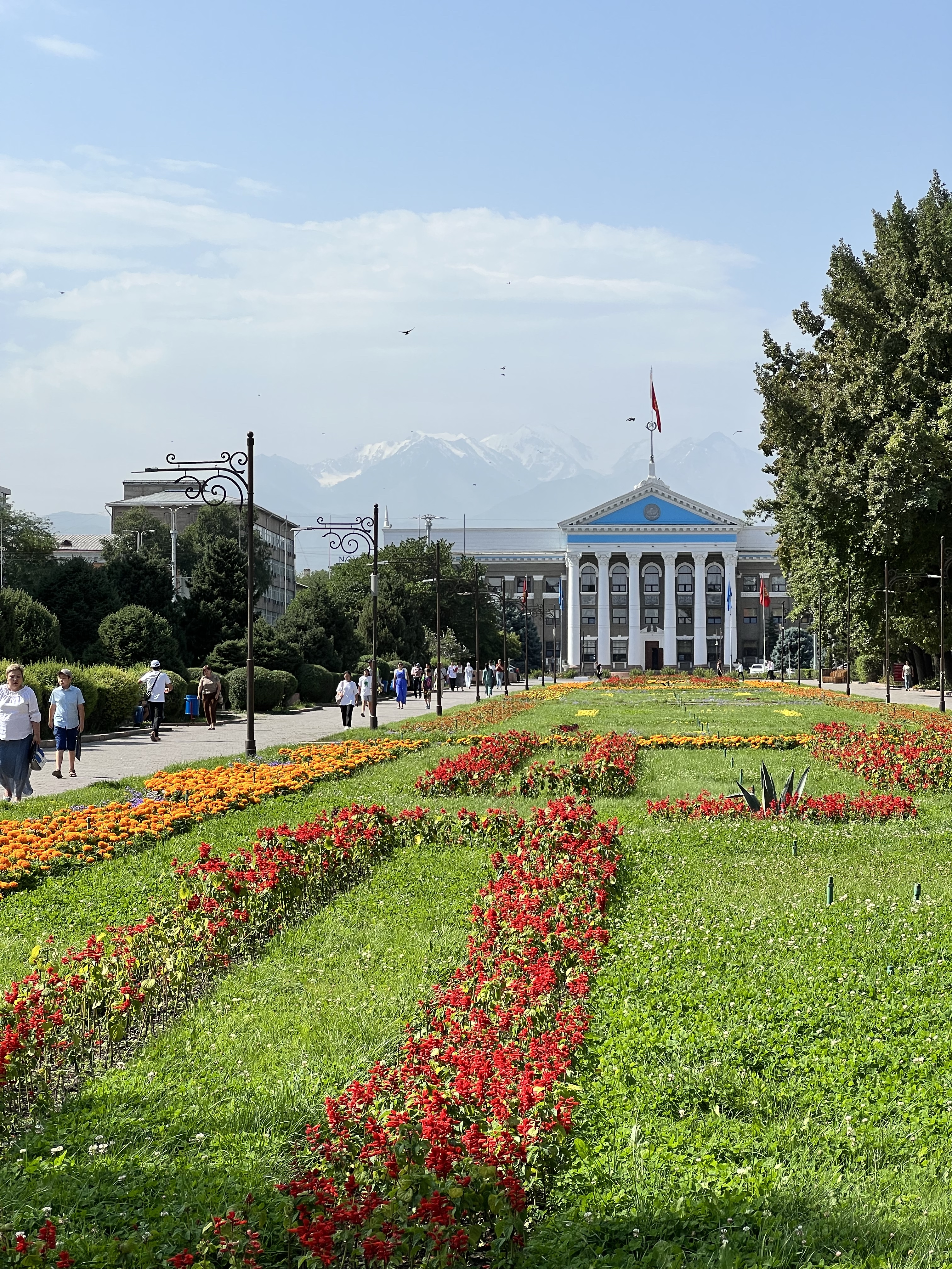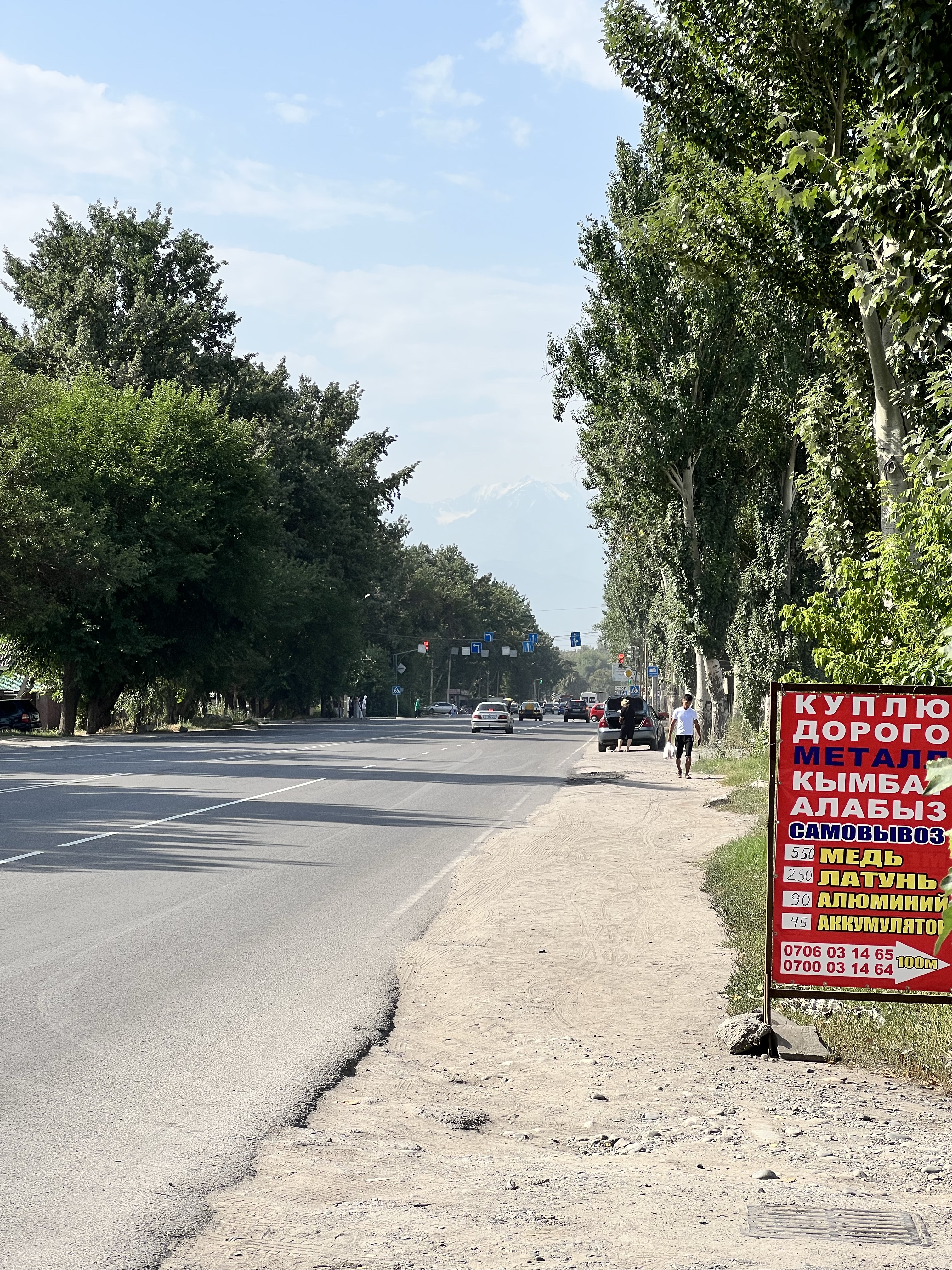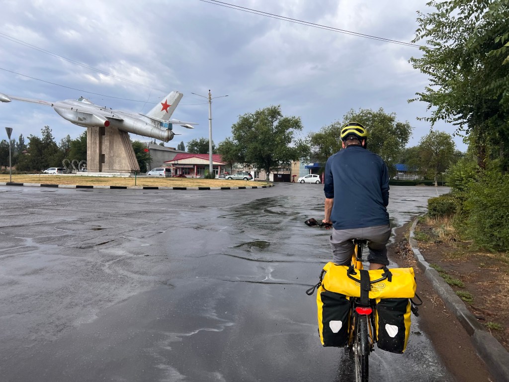 Am nächsten Tag standen noch 70km bis nach Bishkek auf dem Programm. Hier gab es das erste mal keine Höhenmeter zu überwinden und es ging flach dahin. Anfangs ging es ohne viel Verkehr gut voran. Manchmal sah es aus als wären wir in Südostasien. Durch die vielen Bäume sah es teilweise aus wie Dschungel, sehr ungewöhnlich für Kirgisistan. Umso näher wir Bishkek kamen, um so krasser wurden der Verkehr und die Abgase. Zum einen verbrennen Leute ihren Müll vor den Häusern und zum anderen die Abgase der Autos, vor allem der LKWs. Ich meine, wir in Deutschland reden viel über Klimaschutz und Abgase reduzieren. Was ich natürlich auch richtig finde. Ich persönlich bin kein Klimaaktivist, doch ganz ehrlich, was nützt dieses penible Verhalten bei uns, wenn im Rest der Welt ganz einfach gefühlt alles egal ist. Und das ist ja nicht nur hier in Kirgisistan so. In Europa fängt das schon in Italien an. Und auch wir haben das damals schon auf unserem Weg von Deutschland nach Istanbul beobachten können.
