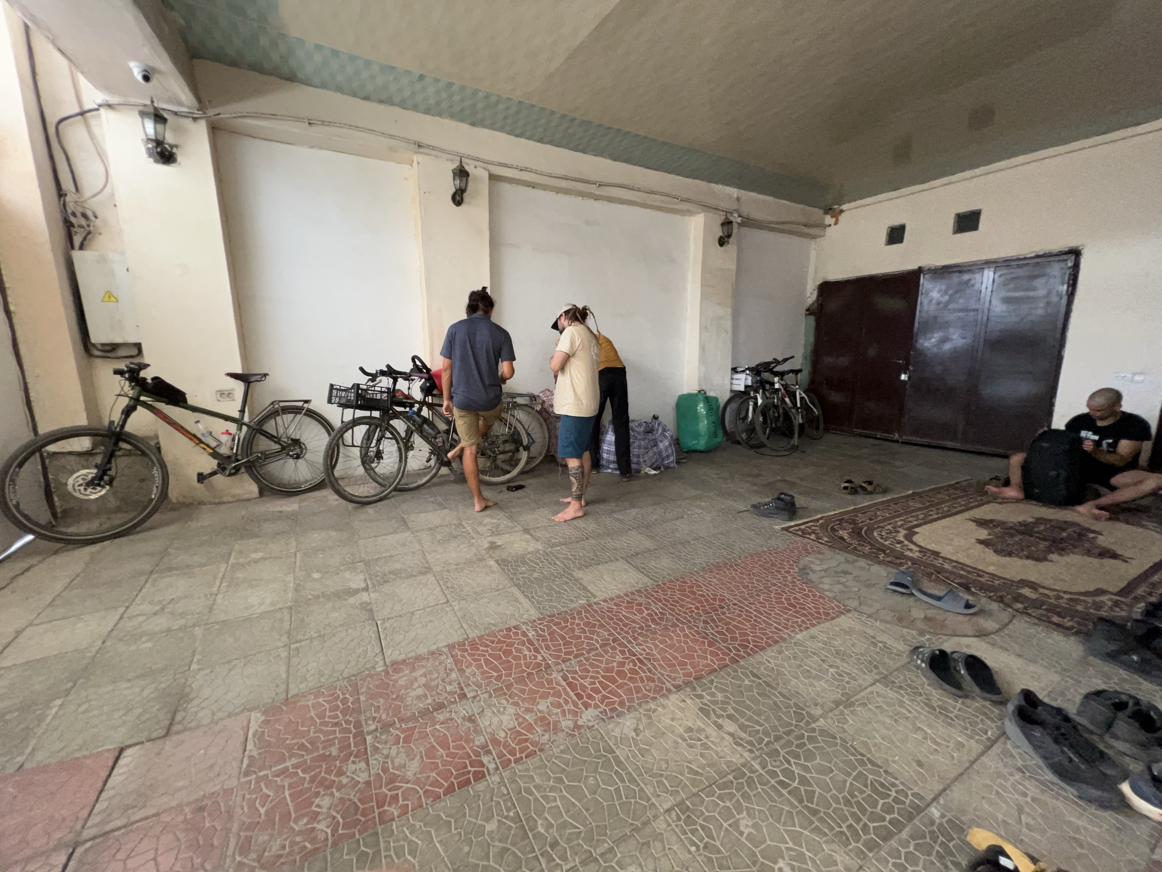 Marc aus England war für das Silk Road Mountain Race angemeldet. Nach einigen Touren und meinen Erfahrungen cancelte auch er seine Teilnahme Alles befand sich im Bau Der Nachwuchs spielte im Schlafsaal Ego Shooter Up to Date