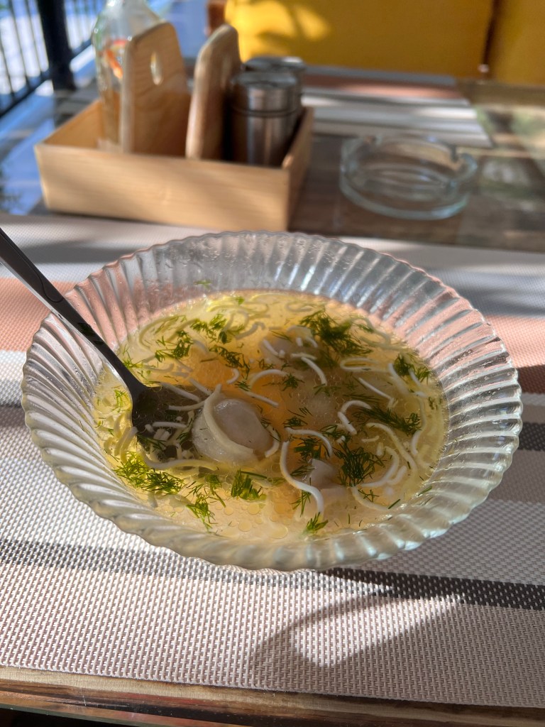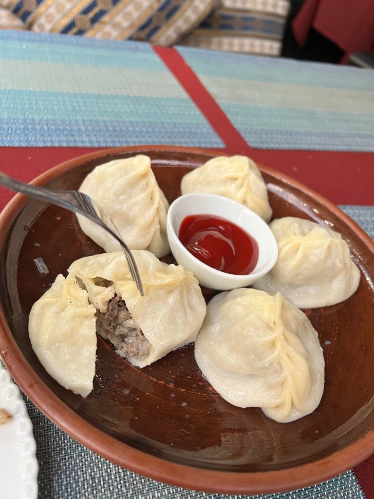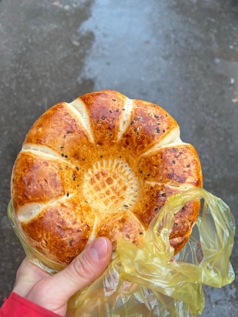 Sieht lecker aus ist es auch Manti gefüllte Teigtaschen mit Lamm und Schweine Hack Als Vegetarier hat man es hier echt schwer. Es ist einfach überall Fleisch drin 🙂Der Proviant für die nächsten Tage