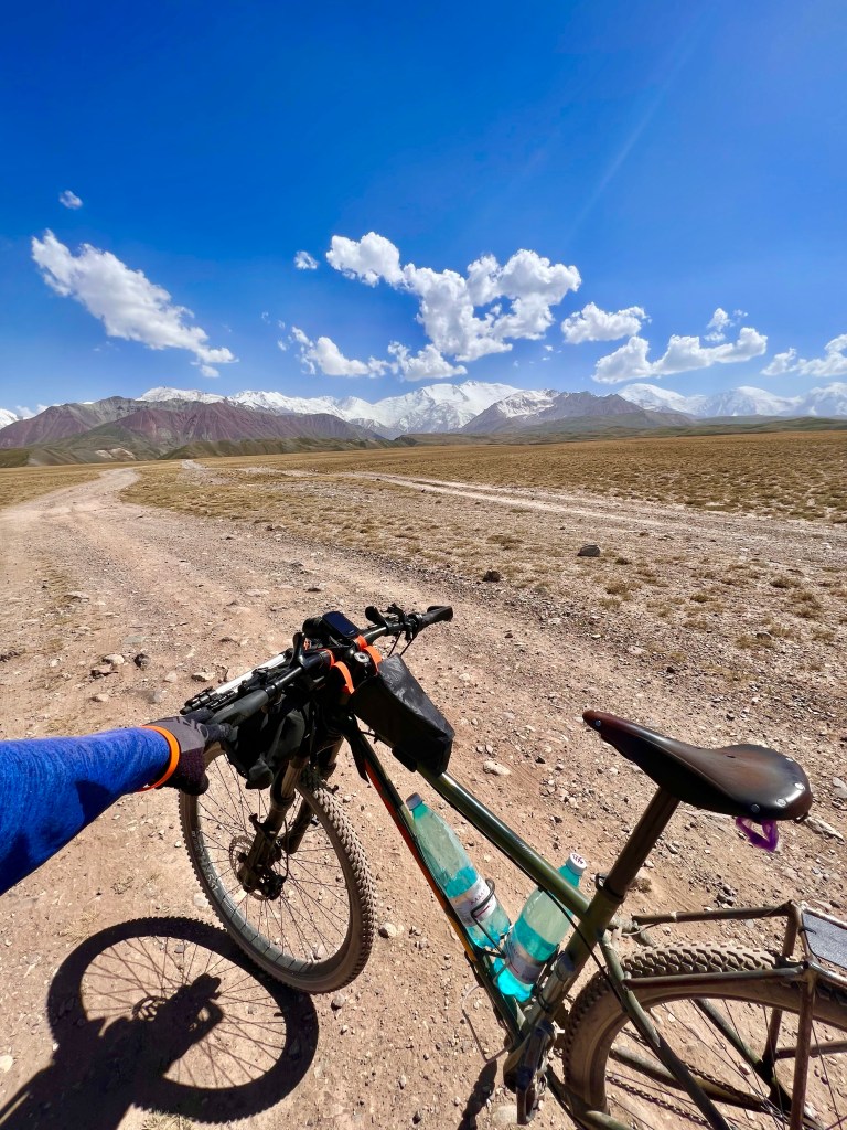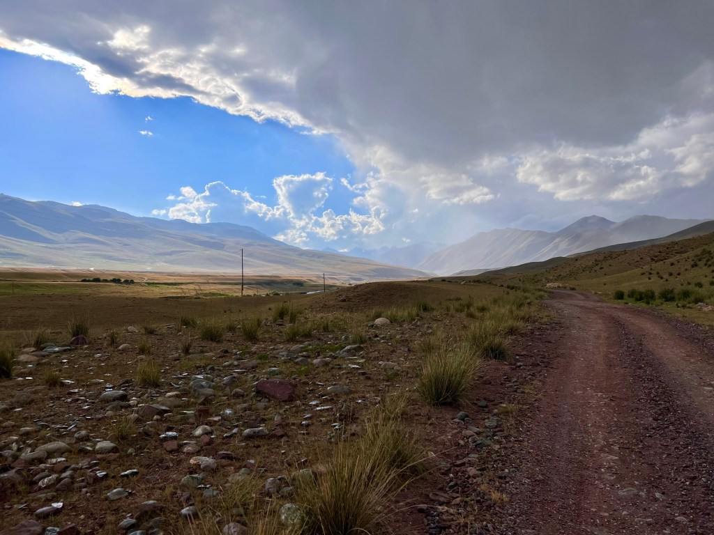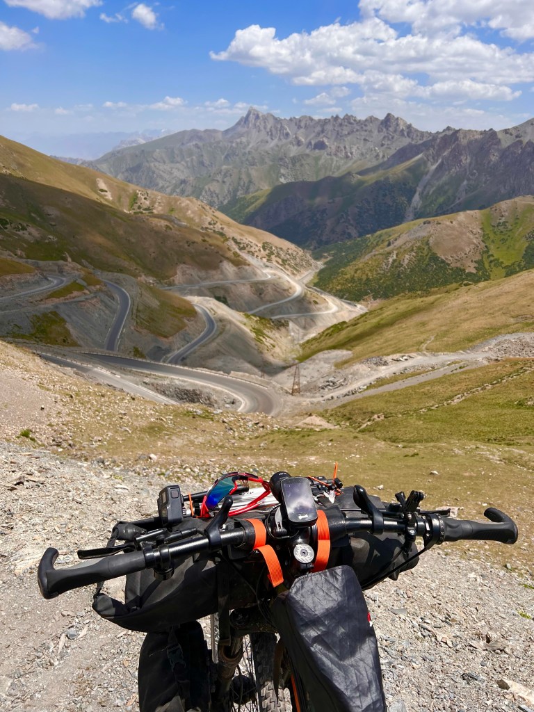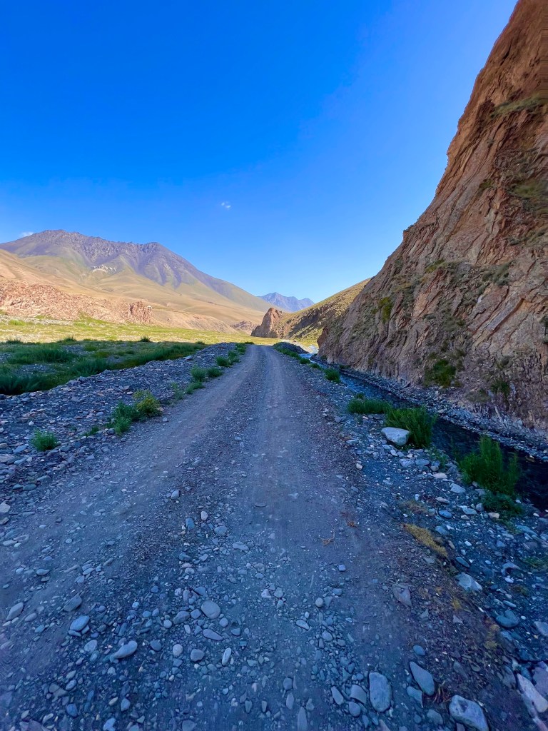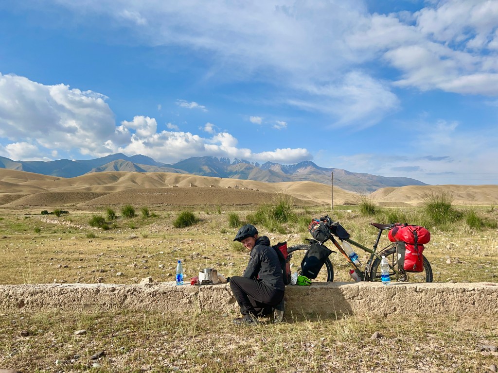 Dabei musste ich an das Silk Road Mountain Race denken was seit ein paar Jahren in Kirgisistan stattfindet. Mit knapp 2000km und über 35.000hm in 12 – 13 Tagen eines der härtesten Mountainbike Rennen der Welt. Die Jungs dort fahren nur auf solchen Weg durch Kirgisistan über Pässe von bis zu 4200m. Ich hatte mich dort auch angemeldet aber dann recht schnell gemerkt das ist zu krass für mich und entsprach nicht der Vorstellung die ich von meiner Tour hatte. Da mein Fokus mehr auf genießen liegt war das definitiv die richtige Entscheidung. Es gibt einen wunderschönen Film über das Rennen welcher eindrucksvoll zeigt wie hart es dort zugeht. Hier der Link zum Video https://youtu.be/UVwjQ_l38L.