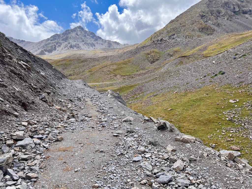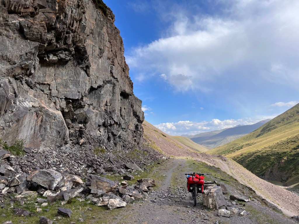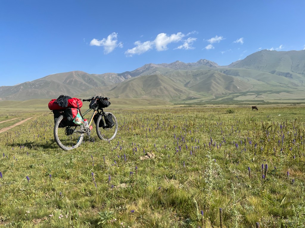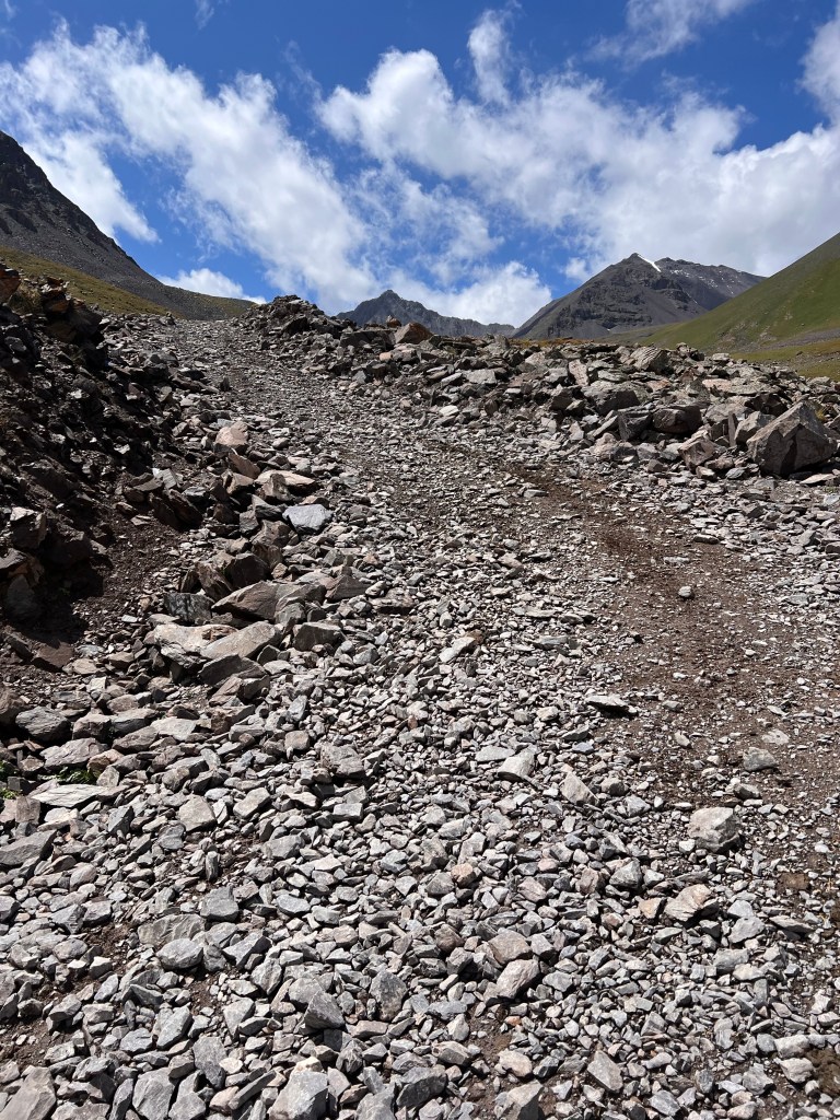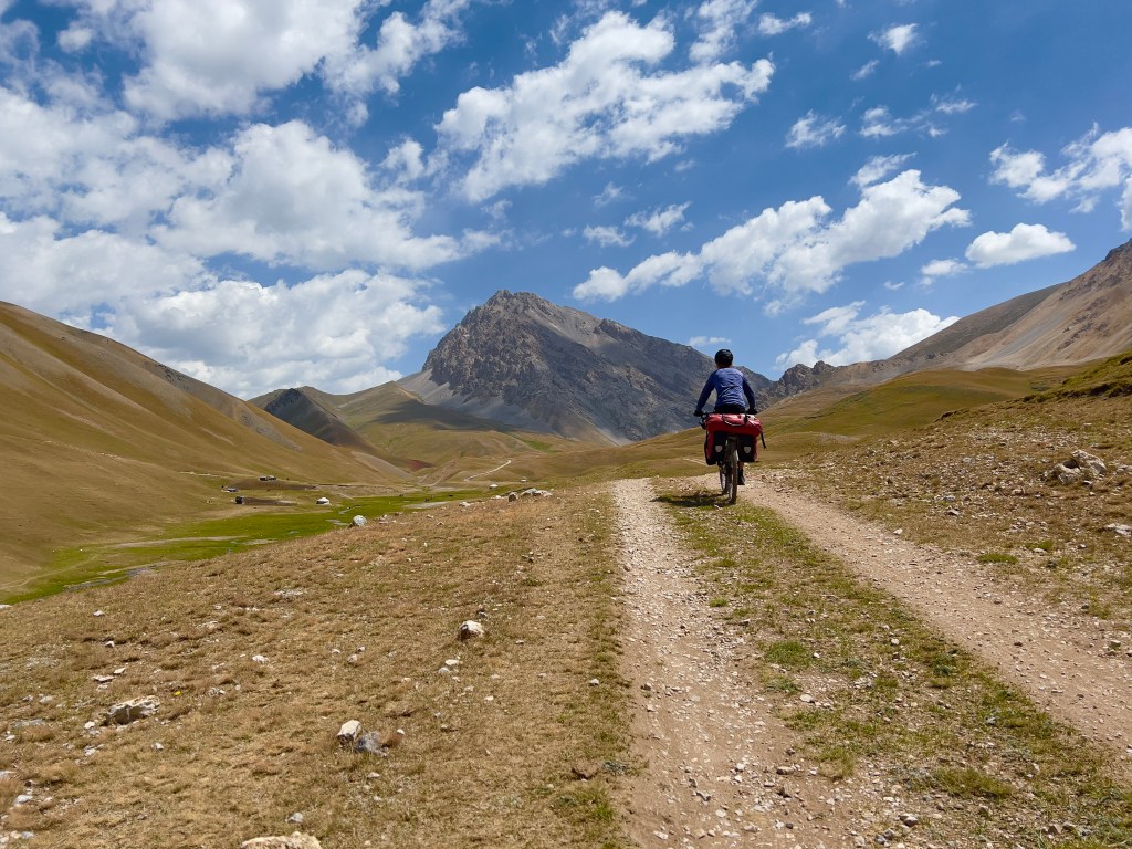 Dabei musste ich an das Silk Road Mountain Race denken was seit ein paar Jahren in Kirgisistan stattfindet. Mit knapp 2000km und über 35.000hm in 12 – 13 Tagen eines der härtesten Mountainbike Rennen der Welt. Die Jungs dort fahren nur auf solchen Weg durch Kirgisistan über Pässe von bis zu 4200m. Ich hatte mich dort auch angemeldet aber dann recht schnell gemerkt das ist zu krass für mich und entsprach nicht der Vorstellung die ich von meiner Tour hatte. Da mein Fokus mehr auf genießen liegt war das definitiv die richtige Entscheidung. Es gibt einen wunderschönen Film über das Rennen welcher eindrucksvoll zeigt wie hart es dort zugeht. Hier der Link zum Video https://youtu.be/UVwjQ_l38L.