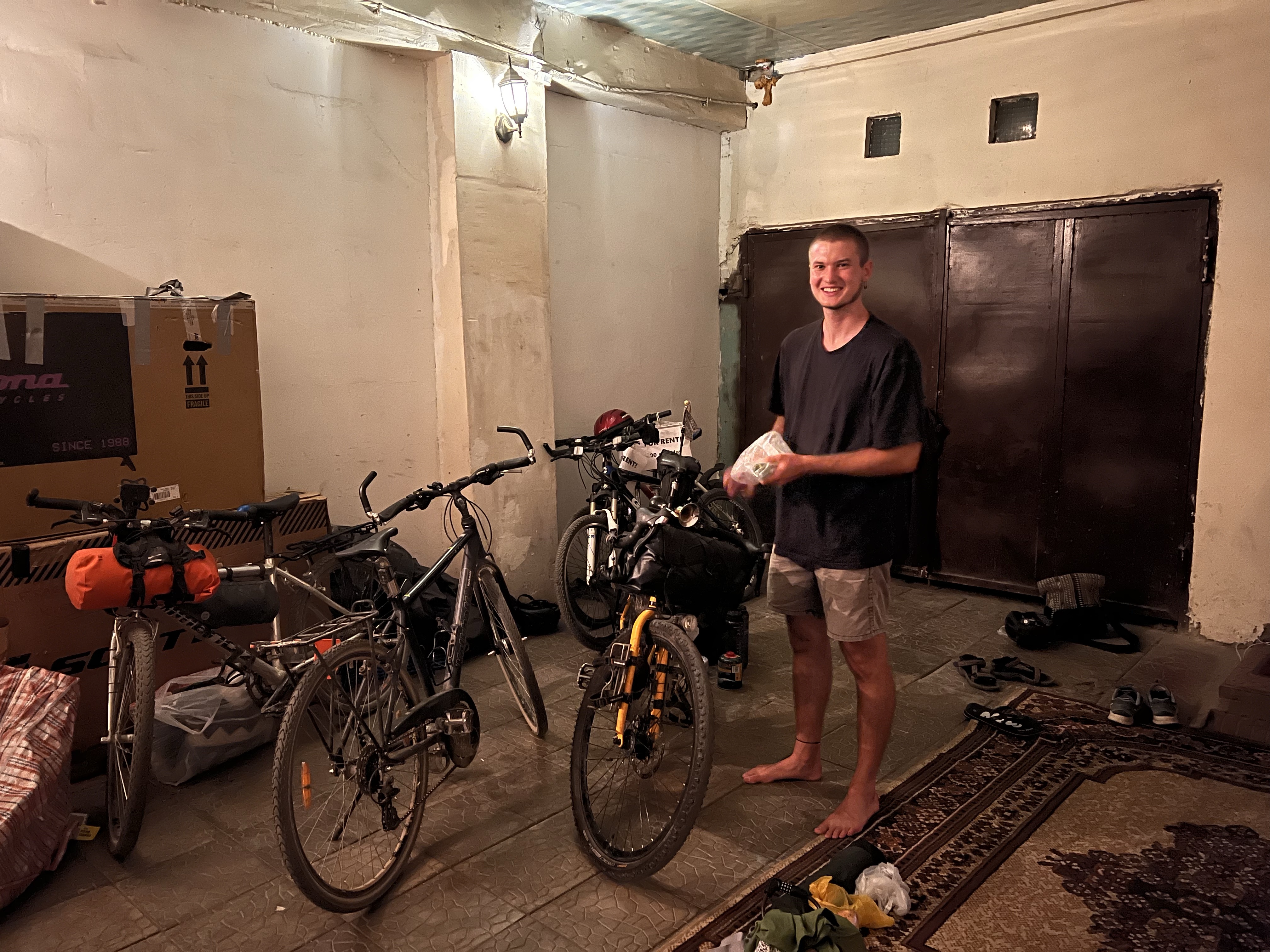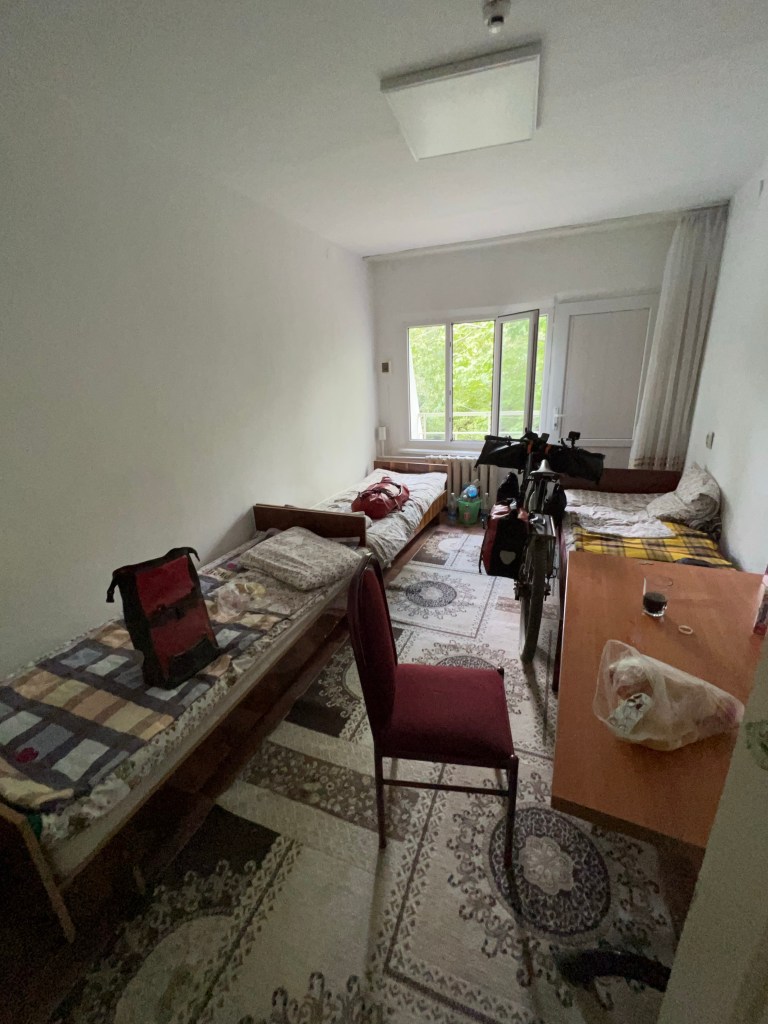 Kurze Zeit später kam dann noch Jonathan aus Deutschland mit dem Rad im Hostel an, ziemlich fertig, da er von Armenien nach Bishkek geflogen ist und eine stressige Reise hatte. Wir kochten und aßen zusammen spät noch Abendbrot und ich lauschte Jonathans Erlebnissen. Er ist 21 und seit gut 11 Monaten unterwegs, von Deutschland aus. Er war bereits in Israel und Jordanien und hat eine etwas andere Route als wir genommen 2017. So klang der erste Tag im Hostel aus.