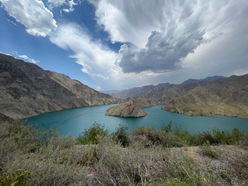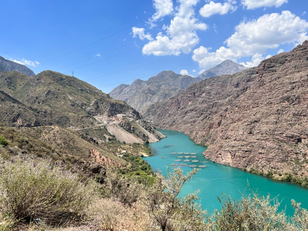 Der Toktugul Stausee im Hintergrund Hier wurde ich zum Essen eingeladen