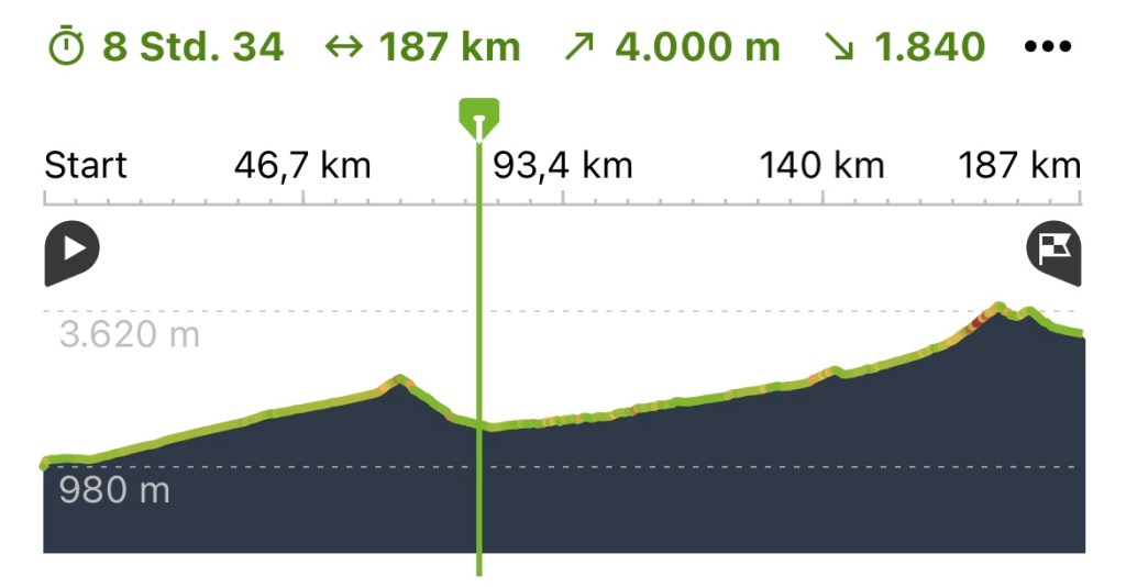 Kürzeste Distanz: 53,8 km (Aufgrund Magen-Darm-Infekt)