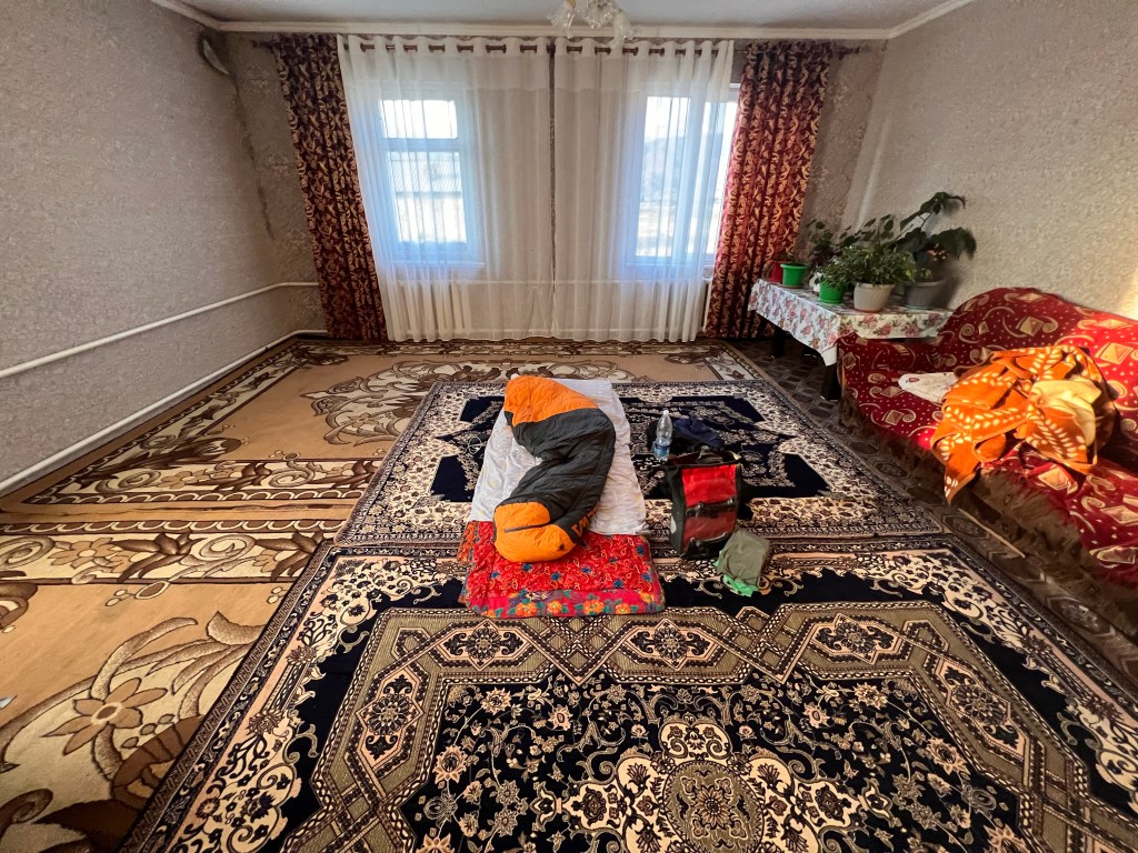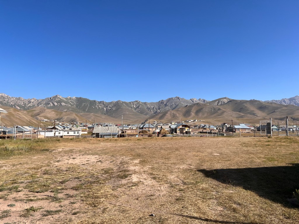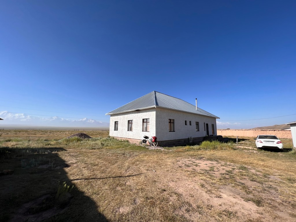 Ich werde jetzt hier ein paar Tage in Sary Tash bleiben und dann weiter nach Sary Moghol fahren. Ich bin in der Pamir extreme Mountain Lodge untergekommen, welche wirklich top ausgestattet mit sehr sauberen Zimmern ist. Aus dem Aufenthaltsraum hat man einen genialen, ungestörten Blick auf die Alai Berge, die im Hintergrund liegen. Es war allerdings auch eine kleine Herausforderung hier unterzukommen. Als ich ankam, war gefühlt keiner da und alle Türen standen offen, doch ich fand im Haus keinen. Dann mal den Besitzer des Pamir Extreme angerufen, die russische Bandansage macht mir klar: entweder Nummer falsch oder nicht erreichbar. Nagut dann zum nächsten Guesthouse. Hier das gleiche Spiel: alle Türen auf und keiner da. Ok, dachte ich mir, lass mich erstmal was essen irgendwo, dann wird sich schon was ergeben. Kurz darauf meldete sich Shamurat vom ersten Guesthouse und erklärte mir, dass er unterwegs sei und jemand mir ein Zimmer geben würde, wenn ich zurück fahre. Plötzlich war sogar jemand anzutreffen und ich konnte mein Zimmer beziehen. Also immer dran bleiben, nur nicht immer so verbissen.