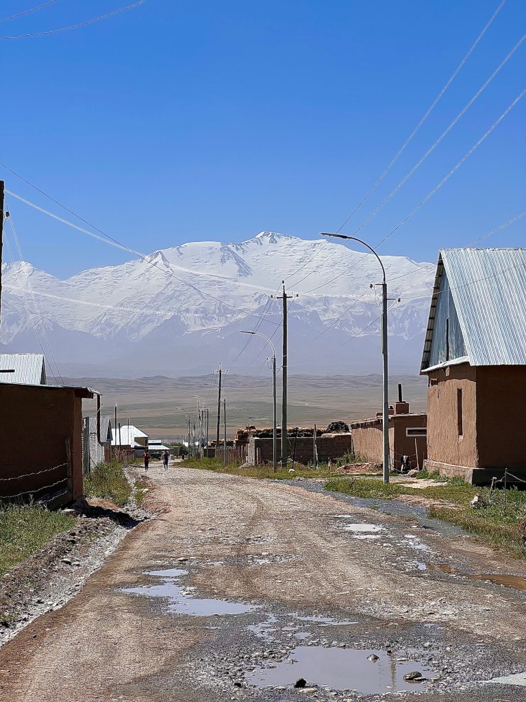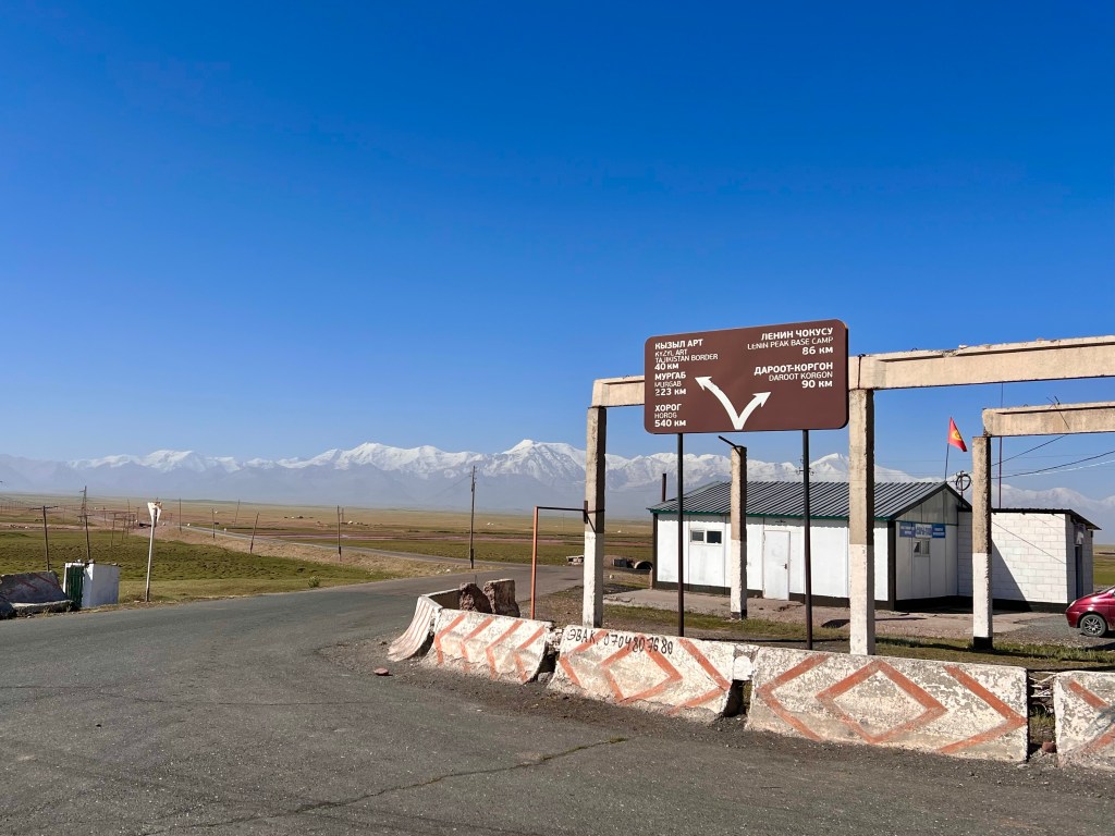 Nach dem ich bei Shamurat die Ruhe und Abgeschiedenheit in seiner Mountain lodge genießen konnte ging es nach zwei Tagen weiter Richtung Sary Moghol und Pik Lenin. Kurz nach Sary Tash zweigt die Straße nach Links ab führt zum Grenzübergang nach Tadschikistan über den Kyzyl Art Pass auf über 4000m. Das wäre die Straße gewesen von dem man über den Pamir Highway von Tadschikistan nach Kirgisistan kommt. Da hier allerdings die Grenze geschlossen ist und ebenso der Grenzübergang nach China der ca. 70km entfernt ist war in Sary Tash an Touristen niemand anzutreffen. Da der Ort ein wichtiger Verkehrsknotenpunkt für einheimische und Reisende ist.