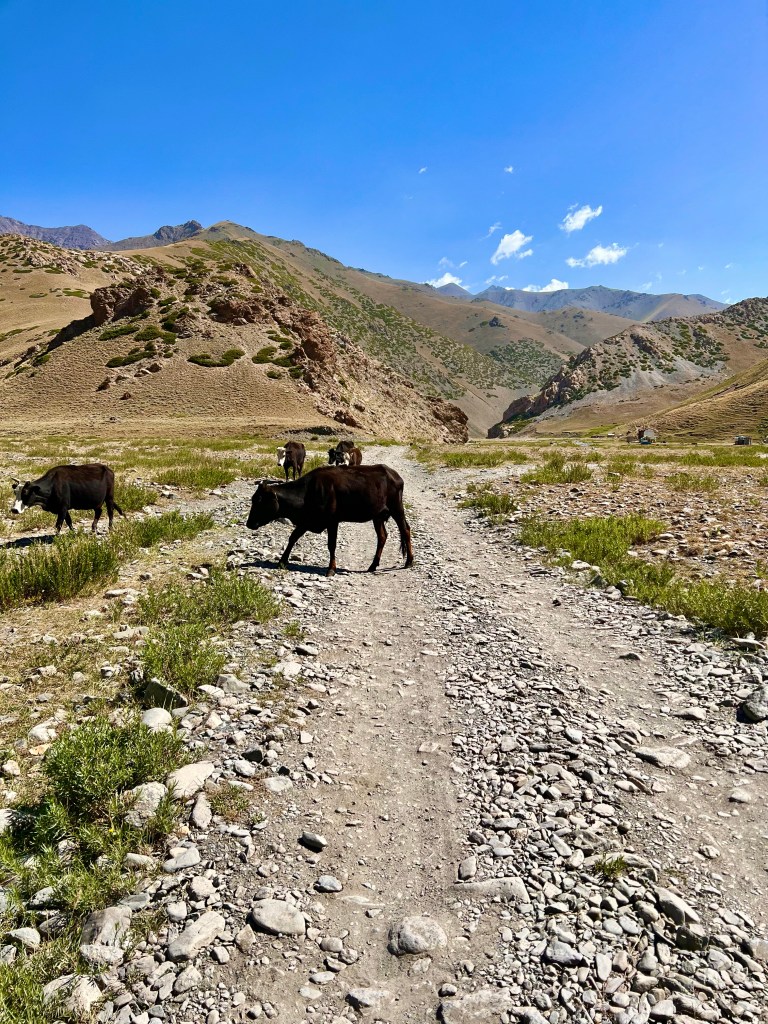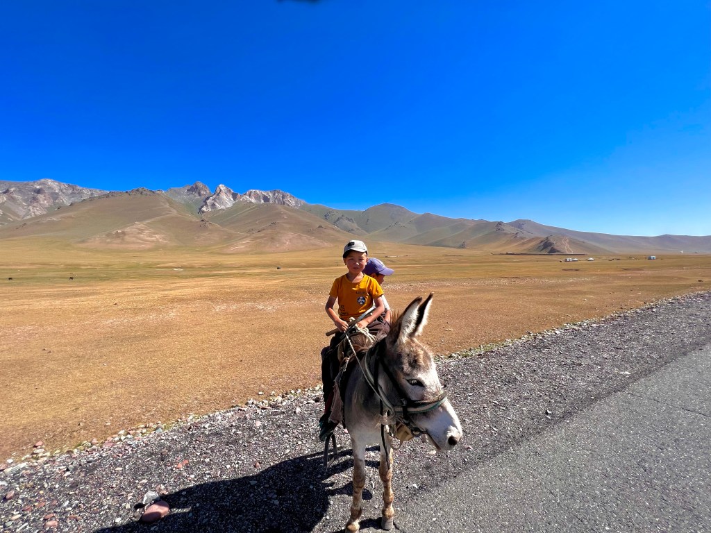 Auf der Straße nach Sary Moghol war sehr wenig Verkehr und ab und standen ein paar Jurten wo die Menschen hier auf knapp 3000m Landwirtschaft und Viehzucht betreiben. Hier sind große Herden von Kühen, Pferden und Lautstarken Eseln unterwegs. Spannend zu sehen auf welche Art und Weise diese Menschen ihr Leben bestreiten. Häufig schon seit Generationen an der gleichen Stelle mit den fast gleichen Mitteln. Ein Leben was für uns zuhause denke ich nicht vorstellbar wäre. Doch das ist nur meine Sicht, möglicherweise wäre das Leben was wir in Deutschland führen für diese Menschen genauso nicht vorstellbar. Die ja so in Einklang mit Natur und ihren Tieren leben. Denn wer hat das Recht zu entscheiden was gut und schlecht ist. Das kann nur jeder für dich selbst. Doch tun meiner Meinung nach in Deutschland viele genau das Gegenteil. Sie wollen anderen Sagen was richtig und falsch ist weil man das eben so macht und sie es ja angeblich besser wissen. Ist das nicht sehr vermessen sich über andere zu stellen und ungefragt Kritik an ihnen zu üben nur weil das Konzept nicht in ihr Weltbild passt. Es gibt Millionen von Wegen Leben zu bestreiten doch trauen sich viele nicht ihre ganz eigene Geschichte zu Schreiben. Ich bin dafür angetreten meine ganz eigene Geschichte zu Schreiben und dich lieber Leser möchte ich ebenfalls dazu ermutigen. Denn eine Sache im Leben ist 100% sicher das wir irgendwann Sterben werden. Alles dazwischen liegt in unserer Hand. Macht was drauß !