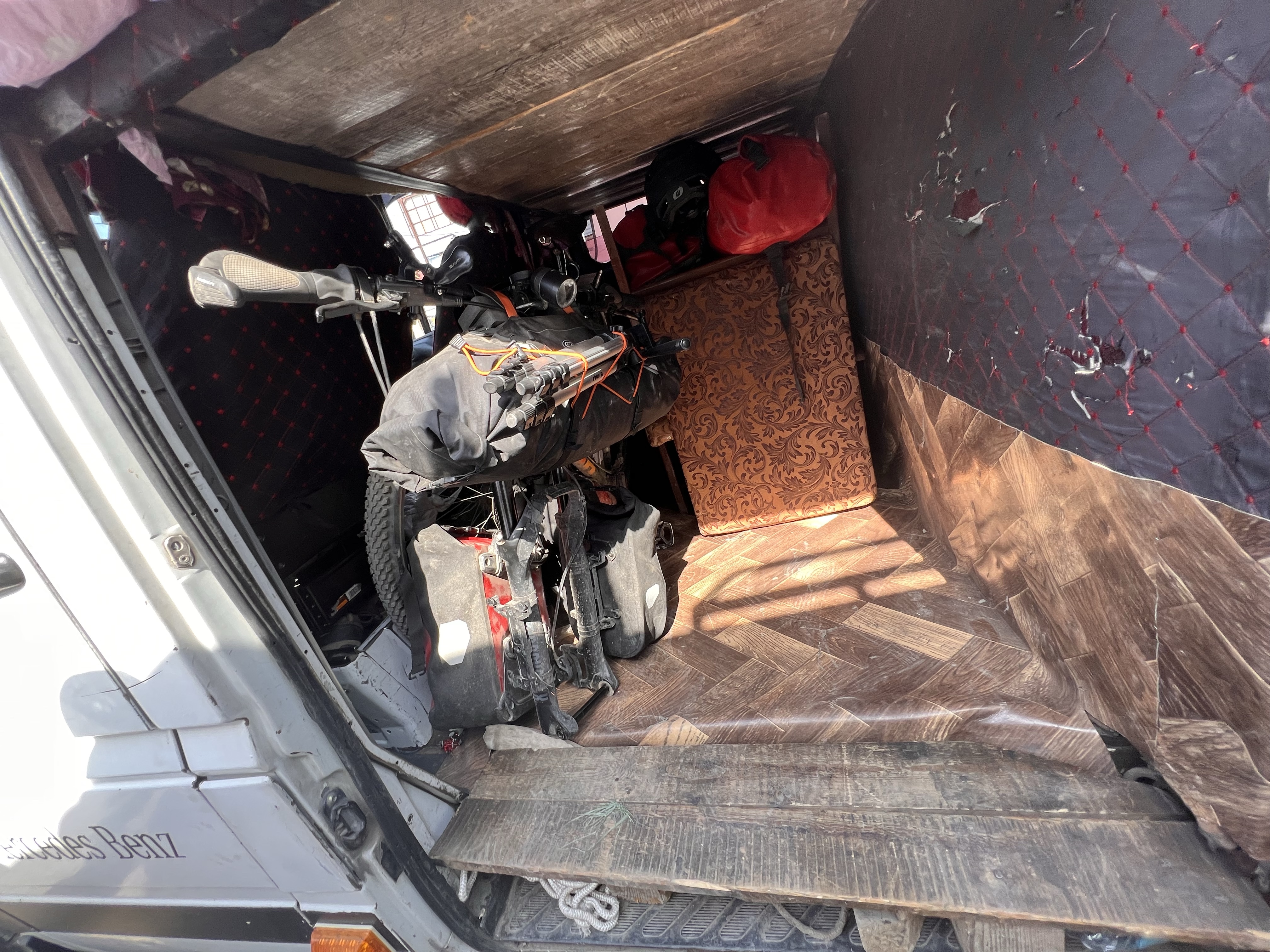 Anfangs sollte mein Rad in den hinteren Laderaum Bis das Obst kamUnd noch mehr Obst kamUnser Rennwagen Mercedes Sprinter mit über 700.000km auf der Uhr Zufrieden das ich mein Rad dann hinter der Vordersitzbank platzieren konnte
