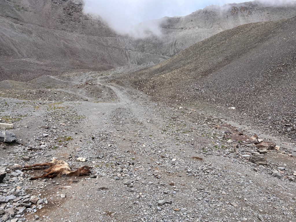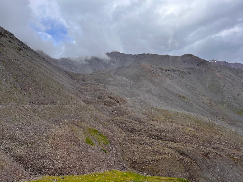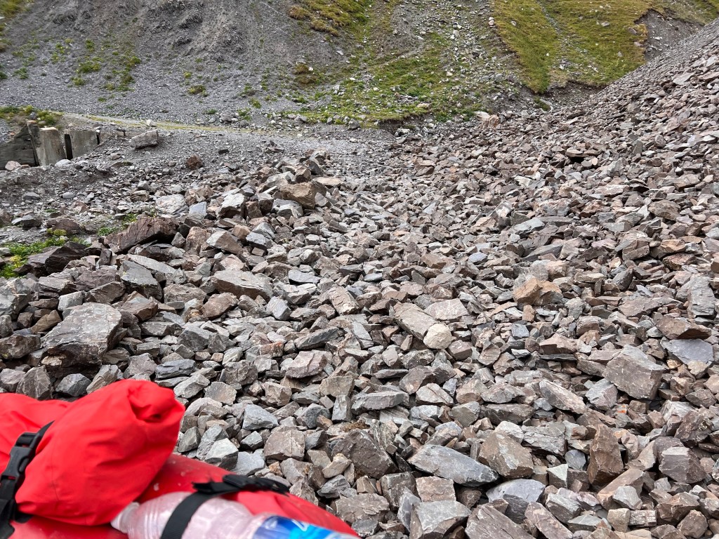 So startete der Weg nach unten Durch viele Lawinen wurde der Weg immer wieder verschüttet Felsen und immer wieder Felsen Das ist der erste steile Teil der Südabfahrt vom Kegety Pass Felsbruch überall So langsam wurde es auch wieder grün Gewitter im AnmarschUnd endlich wieder Regen 🌧 Abendessen bei der gastfreundlichen Familie Schlafplatz alleine im großen Wohnzimmer Frühstück fast wie daheim
