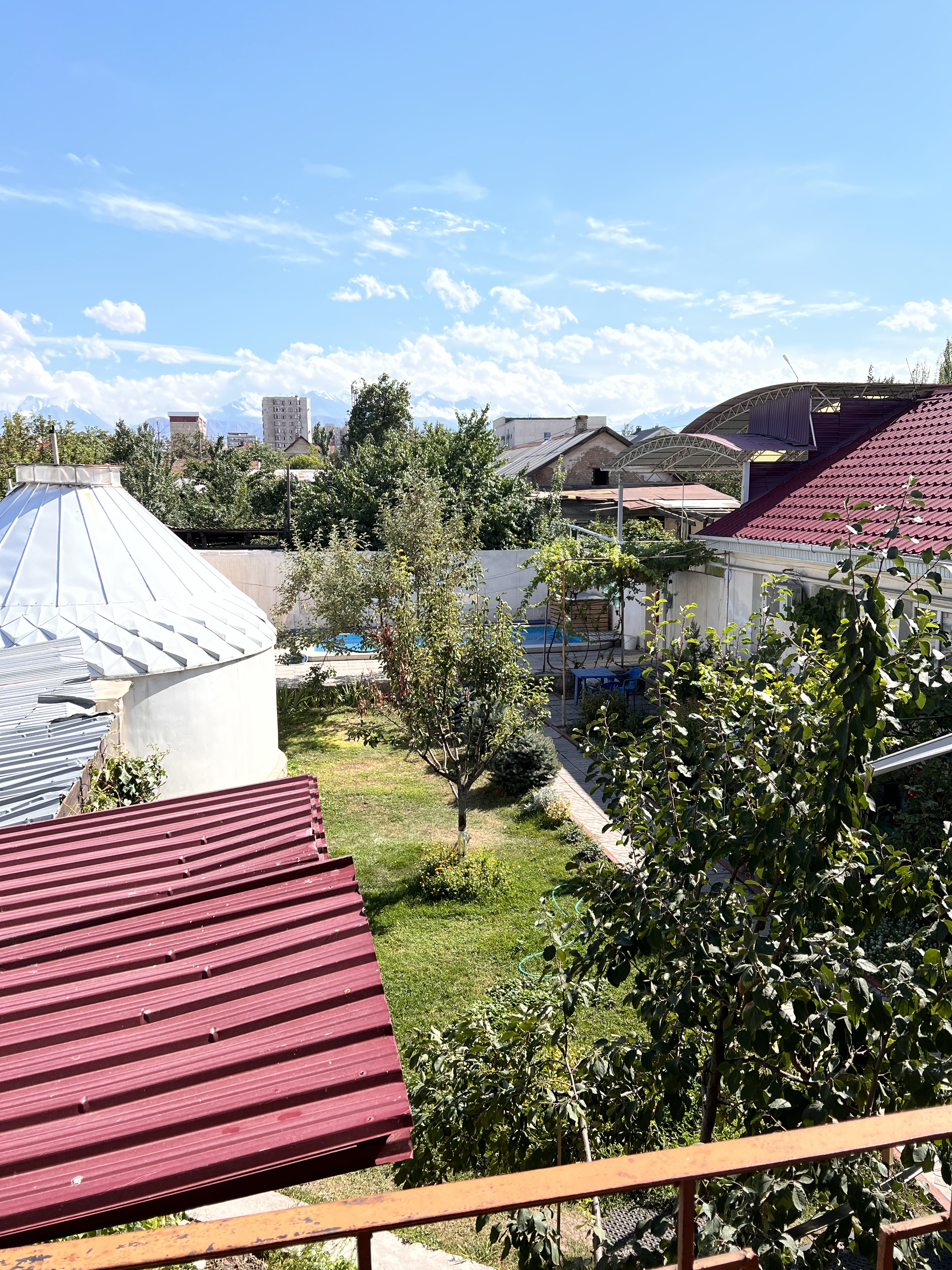 Nachdem ich 5000 Som (ca. 60€) aus dem Bankautomat geholt habe, ging es ins Tunduk Hostel, welches einen tollen Eindruck bei unserem letzten Besuch hinterlassen hat. Eine Übernachtung mit gutem Frühstück kostet hier knapp 9€. Das Hostel ist sehr sauber, mit guter Küche viel Platz und einem Pool zum abkühlen.