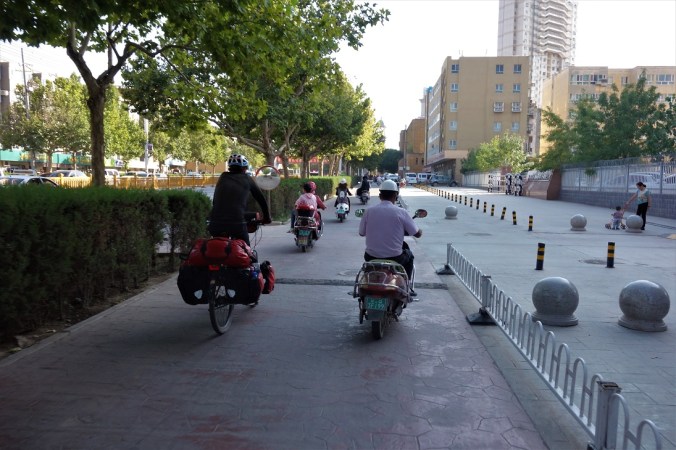 Am dritten Fahrttag gab es mal wieder ein bisschen Abenteuer für uns. Wir hatten ein Städtchen auf der Karte ausgemacht, indem wir uns ein Hotel suchen wollten. Als wir ziemlich spät kurz vor 5, in der Stadt ankamen, die dann doch eher ein Dorf war, mussten wir feststellen das es kein Hotel gibt. So hieß es weiterfahren zur nächsten Stadt. Laut Karte allerdings 40km Entfernung. Dunkel wird es gegen 18 Uhr und wir haben es bisher immer vermieden im dunkeln zu fahren. Tom hatte eine Chinesische SIM Karte und so Internet und konnte nach einiger Suche auf seinem Chinesischen Handy, eine Abkürzung empfehlen, die ca. 20km umfassen sollte. Es begann wieder zu regnen und es fing an zu dämmern. So sind wir unendlich lange durch Zuckerrohrfelder gefahren und haben immer mal wieder kleine Dörfer passiert. Hier wurden wir natürlich wie Außerirdische angestarrt mit unseren Fahrrädern und unserem nicht asiatischem Aussehen. Aber wir Grüßen dann immer mit einem freundlichen Nihao, um so ein wenig das Eis zu brechen, klappt nur nicht immer. Auf den kleinen Schleichwegen durch die Zuckerrohrfelder kamen uns in der Dunkelheit immer wieder Rollerfahrer entgegen, die wie üblich ohne Licht unterwegs sind. Vermutlich um Strom zu sparen und die Reichweite mit ihren E-Roller zu erhöhen. Nach dem es dann schon Stockdunkel war, haben wir wieder die Bundesstraße G72 erreicht und mussten hier noch ca. 14 km bis nach Chengxiang weiter. Die Straße war eine stark frequentierte. So ging es mit vollem Tempo bei Regen und Dunkelheit im 3er Gespann los. Wir zogen hier wieder an vielen Rollerfahrern vorbei die gänzlich ohne Licht unterwegs sind und das bei regennasser Fahrbahn, was bei uns immer nur noch Kopfschütteln auslöst. Als wir dann in Chengxiang gegen 19.30 Uhr endlich ankamen und gleich ein günstiges Hotel gefunden hatten, waren wir glücklich und erschöpft zugleich. So haben wir 132km an diesem Tag hinter uns gebracht.